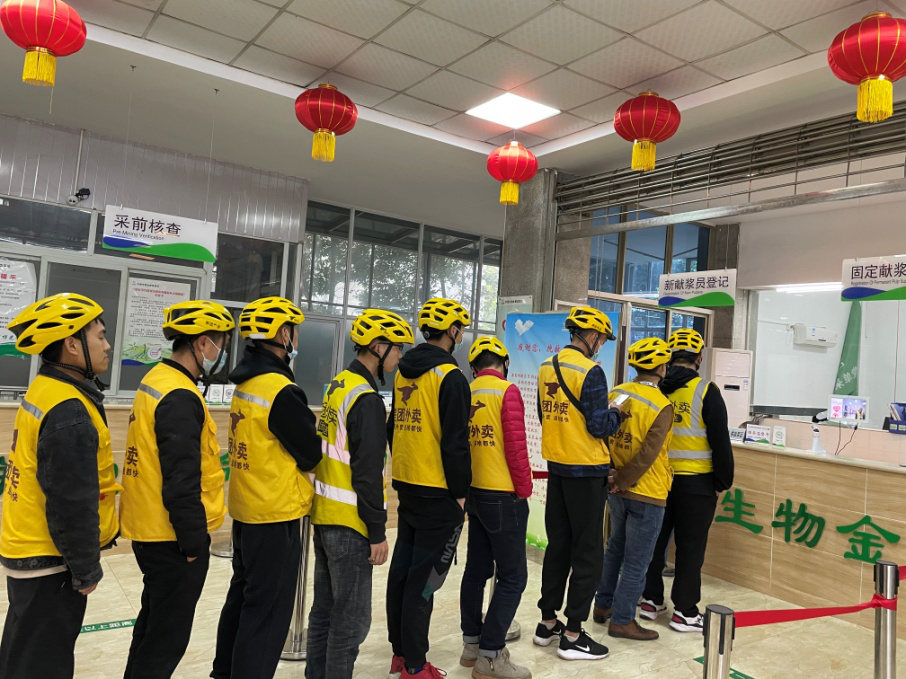 陽春三月,草長鶯飛,中國生物金堂血漿站迎來了20余位身穿亮黃工作服的美團(tuán)外賣騎手,他們此行的目的不是來送餐,而是來捐獻(xiàn)血漿,為他人的生命加油助力。