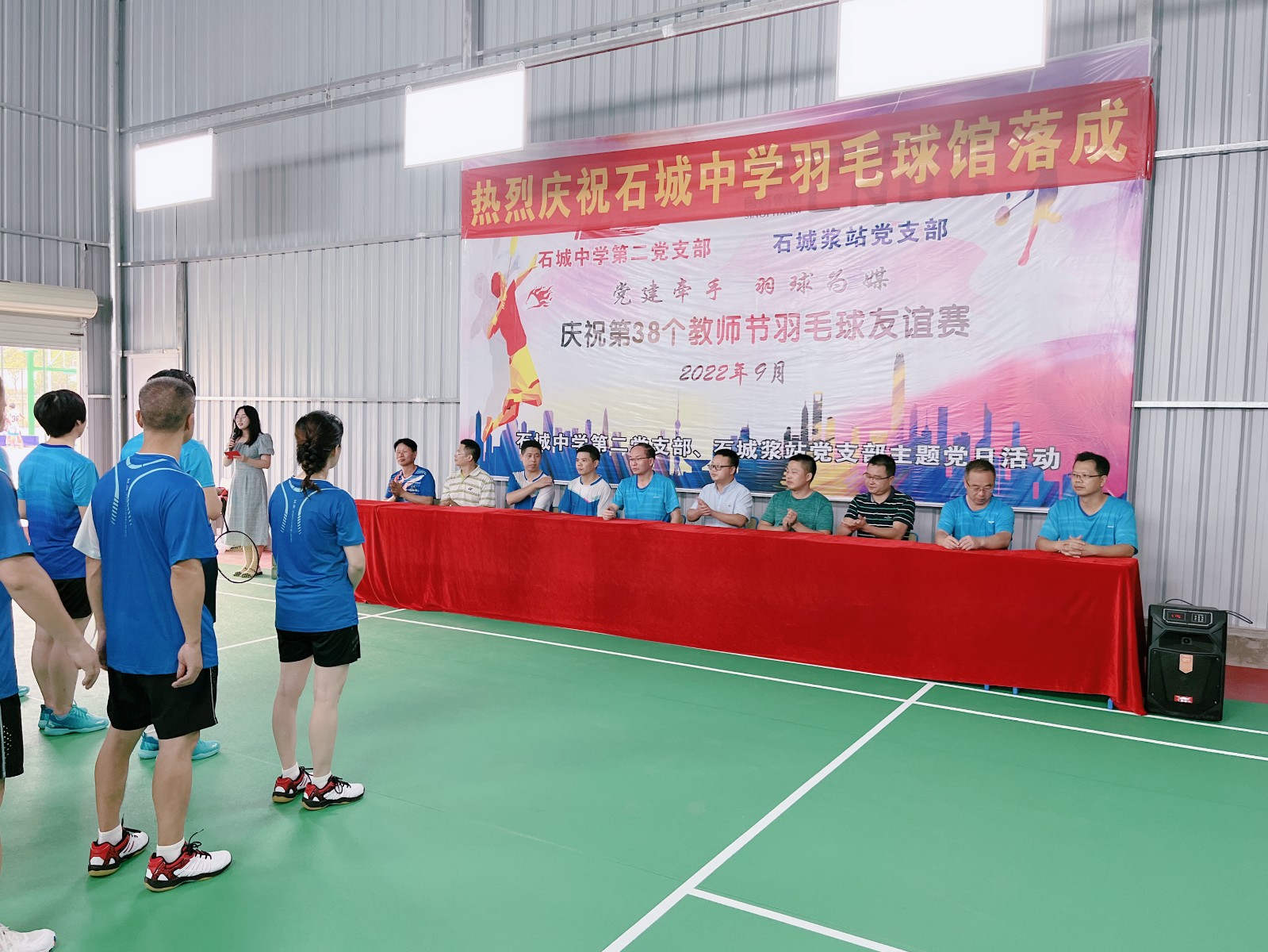 下午三點(diǎn),20多位參賽運(yùn)動員以飽滿的精神狀態(tài),列隊(duì)來到石城中學(xué)羽毛球館,在石城漿站黨支部書記李云和石城中學(xué)黨委書記、校長胡水波的共同宣布下,活動拉開了序幕。