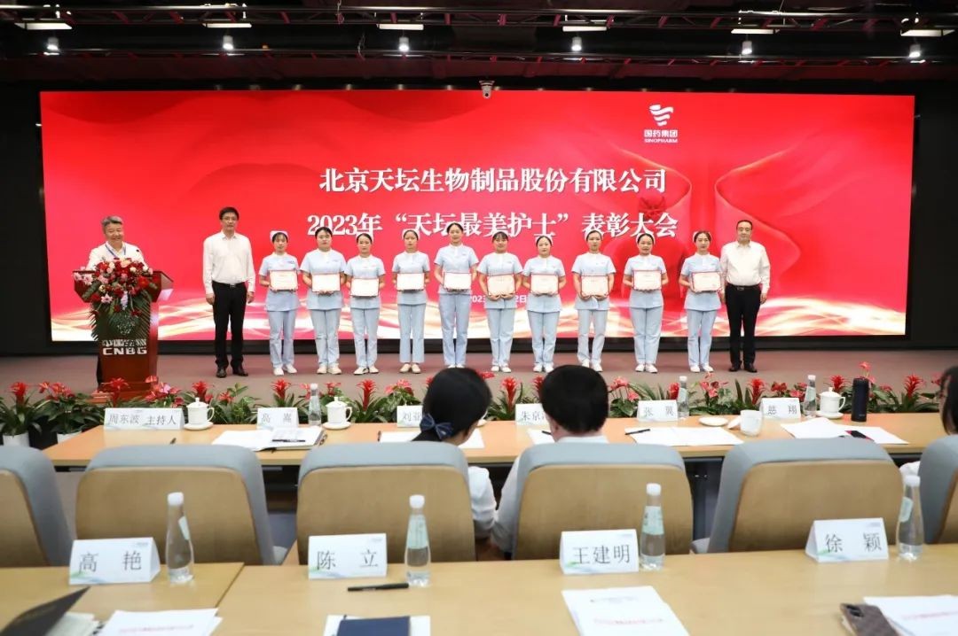 5月12日,2023年“天壇最美護(hù)士”表彰大會(huì)在北京舉行。中國(guó)生物黨委書記朱京津,天壇生物總經(jīng)理付道興,黨委書記劉亞娜,副總經(jīng)理何彥林,副總經(jīng)理兼財(cái)務(wù)總監(jiān)張翼,紀(jì)委書記高嵩出席會(huì)議。天壇生物常務(wù)副總經(jīng)理周東波主持會(huì)議。
