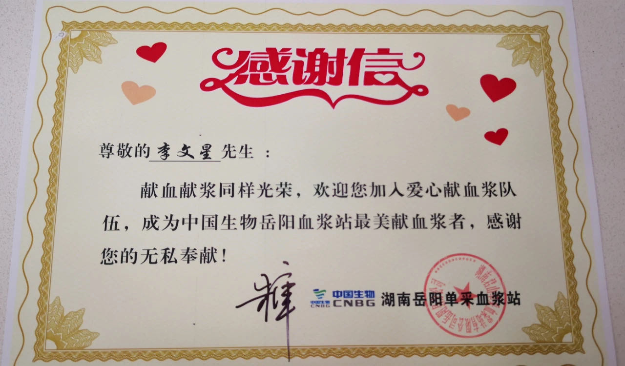6月12日是中國生物岳陽血漿站獲得《單采血漿許可證》開業(yè)的日子。在這個特殊的日子,在岳陽血漿站新建成的漂亮大廳里,朱京津遇見了岳陽血漿站開業(yè)的首位獻(xiàn)血漿志愿者。他代表中國生物向其無私奉獻(xiàn)表示感謝,贊賞他們用實際行動踐行了獻(xiàn)血獻(xiàn)漿同樣光榮。