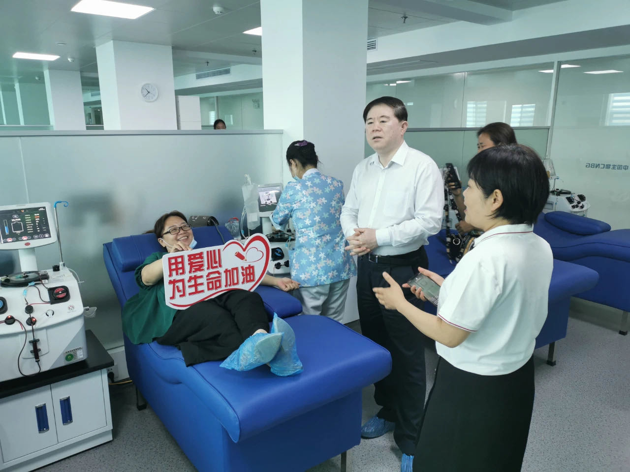 6月12日,在第17個“世界獻(xiàn)血者日”來臨之際,中國生物黨委書記、副總裁朱京津帶隊來到天壇生物所屬湖北監(jiān)利血漿站、湖南岳陽血漿站,看望慰問工作人員和獻(xiàn)血漿志愿者。