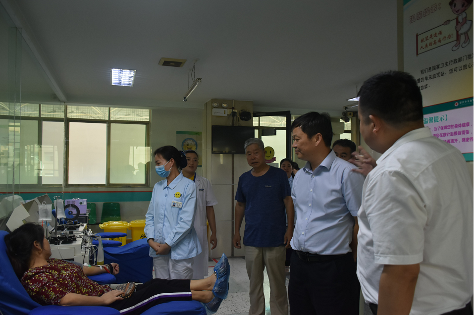近日,天壇生物黨委書記、總經(jīng)理付道興,天壇生物副總經(jīng)理、武漢血制公司總經(jīng)理何彥林一行來(lái)到鄖陽(yáng)血漿站調(diào)研。付道興一行實(shí)地勘察了鄖陽(yáng)漿站新站選址,參觀了漿站采漿流程,聽取了漿站工作匯報(bào)并慰問(wèn)了一線工作人員。