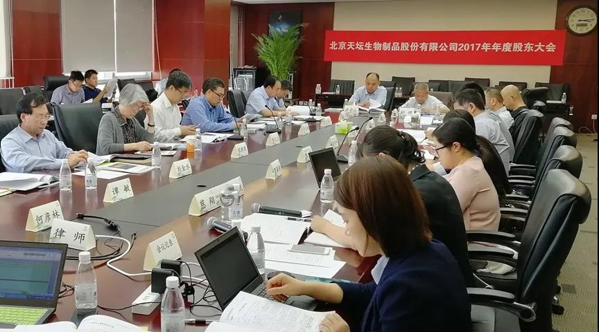 5月22日,北京天壇生物制品股份有限公司召開2017年年度股東大會(huì)。公司副董事長楊匯川先生主持會(huì)議。會(huì)上,公司與各位股東及授權(quán)代表就有關(guān)議案進(jìn)行審議表決,并圍繞血液制品行業(yè)情況、公司經(jīng)營現(xiàn)狀、組織架構(gòu)調(diào)整等內(nèi)容進(jìn)行了充分溝通與交流。