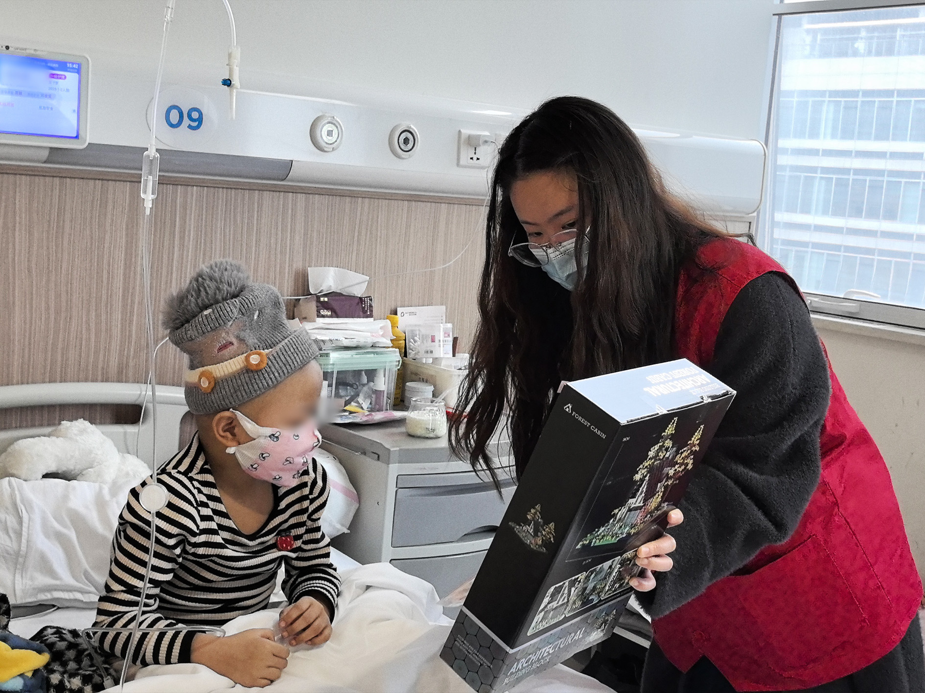 成都蓉生的青年志愿者們滿懷熱忱,踏入白血病公益組織 “小白驛站”。這里,孩子們正與病魔頑強抗?fàn)?,每一個笑容都顯得彌足珍貴。志愿者們圍坐在孩子們身旁,陪他們玩著充滿童趣的游戲,那些簡單的互動,卻能讓孩子們眼中閃爍出光芒。講故事時,志愿者繪聲繪色,孩子們聽得入迷,清脆的笑聲在房間里回蕩,這笑聲如同春日暖陽,穿透了疾病的陰霾,溫暖著每一位志愿者的心靈。